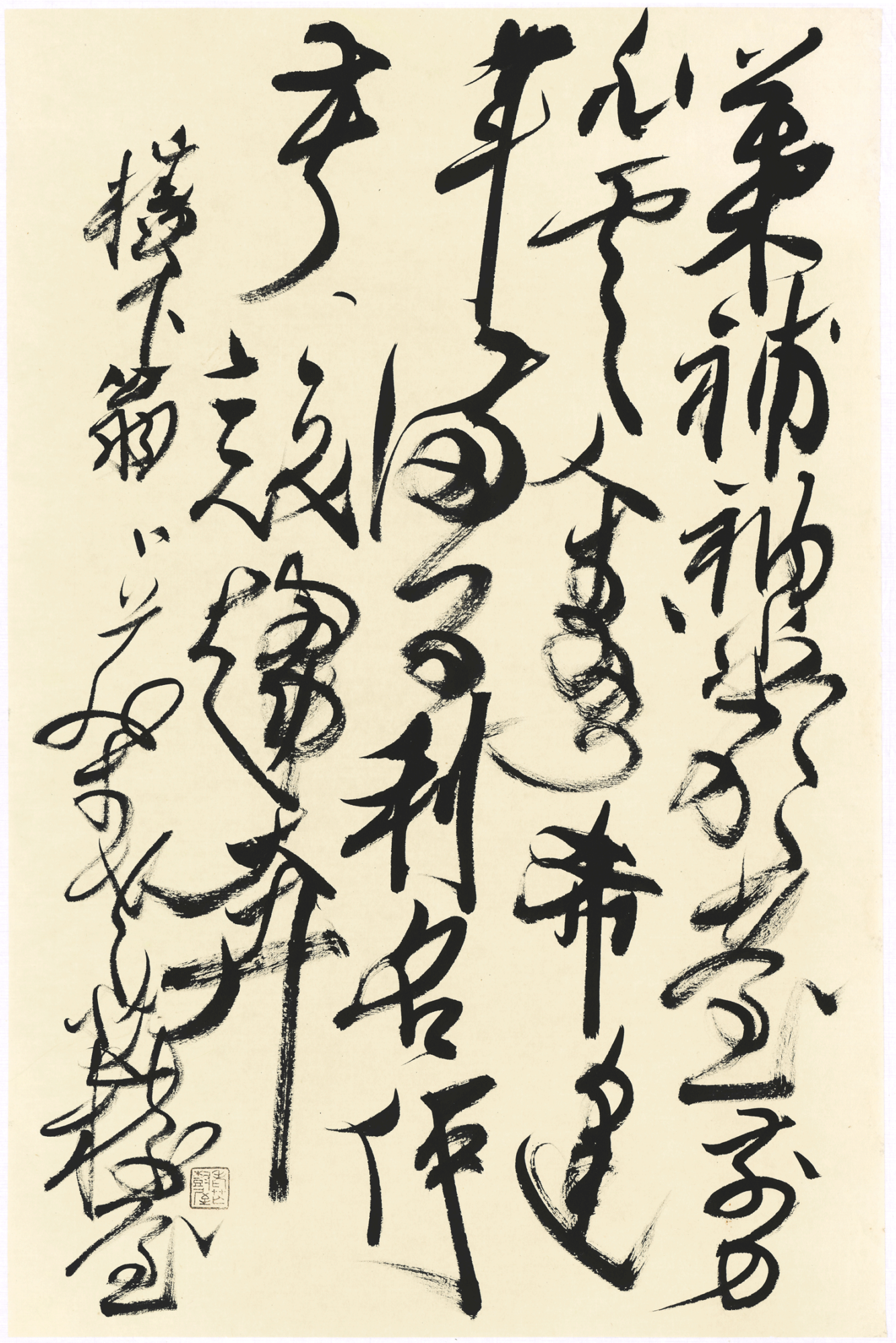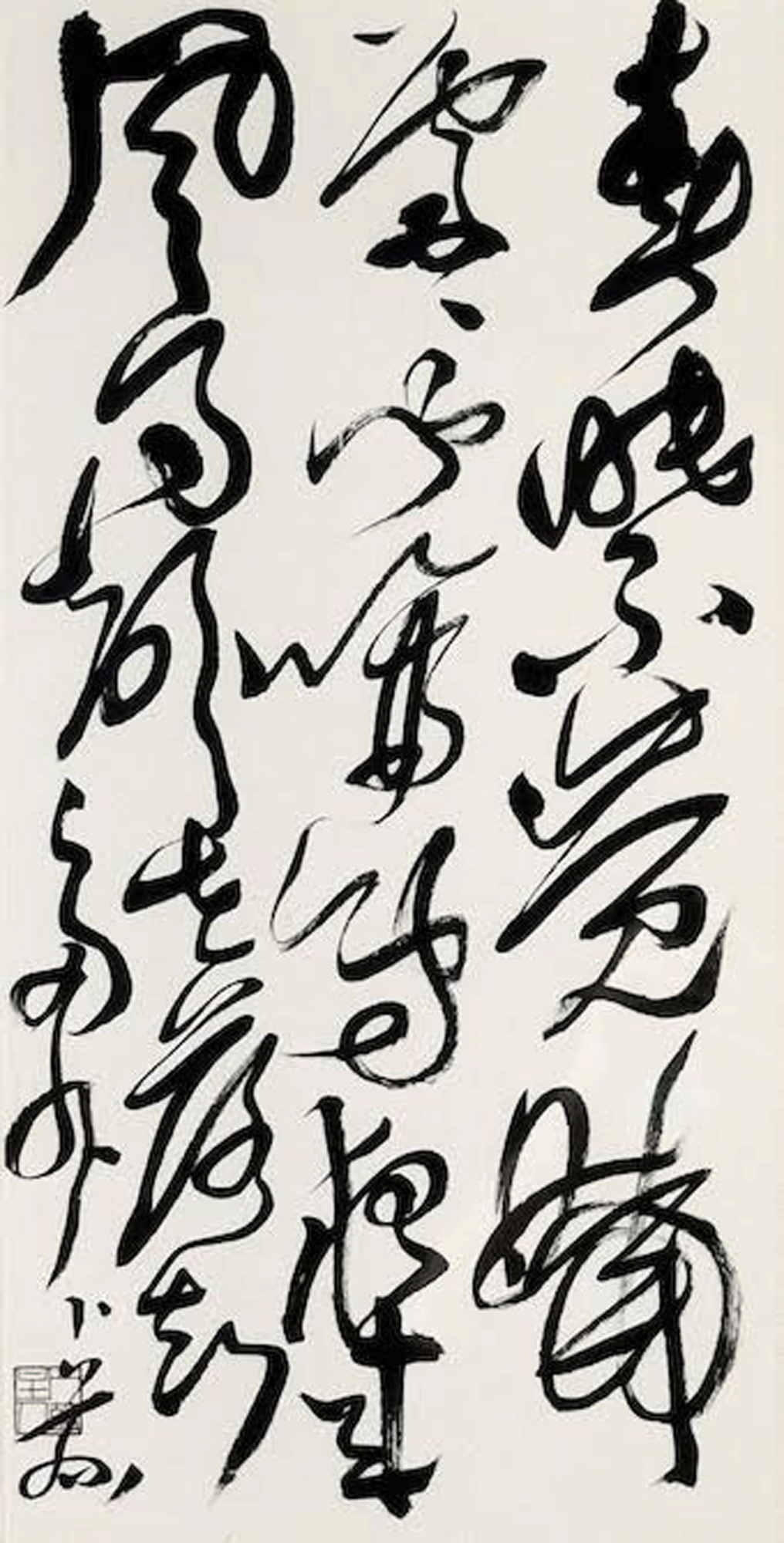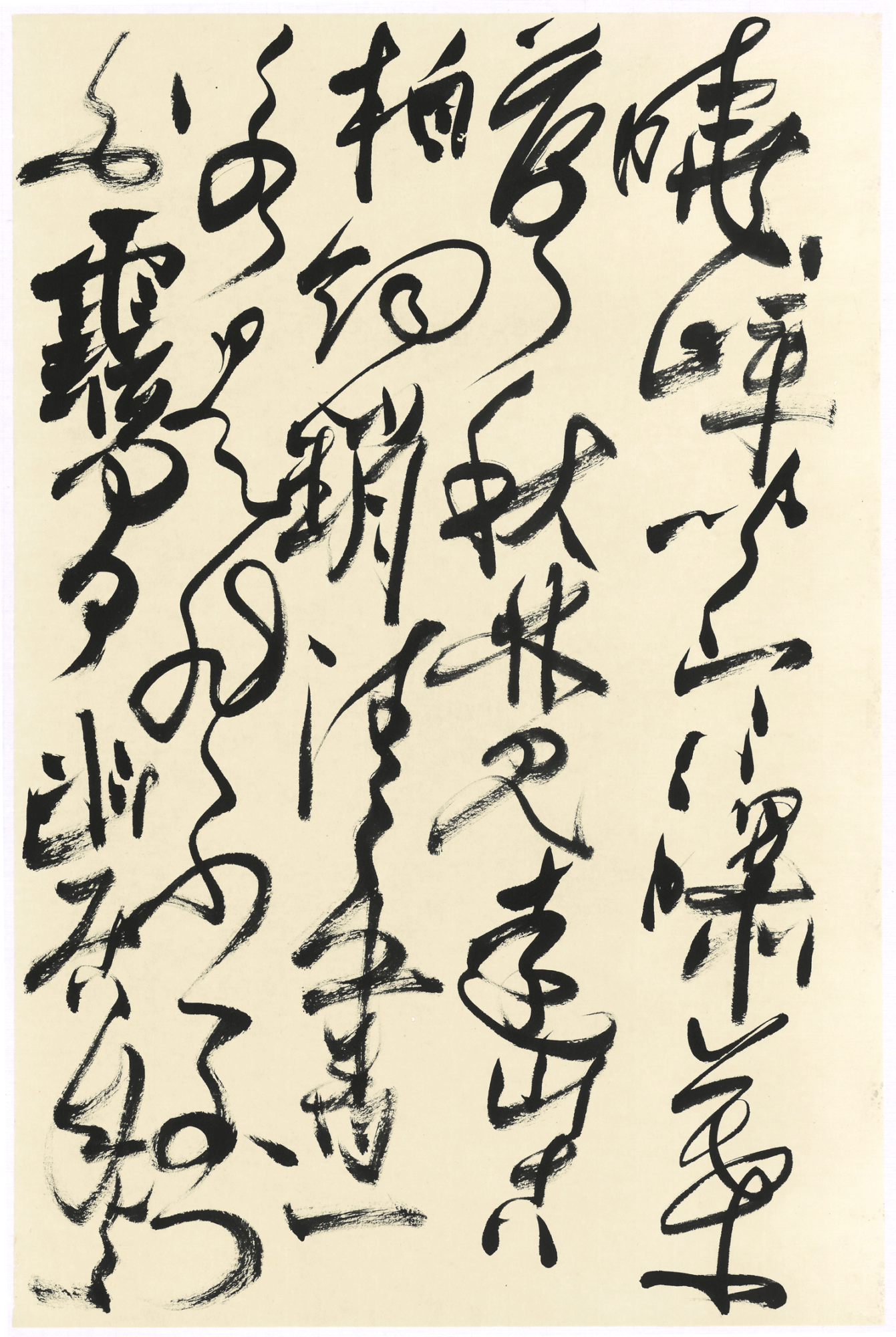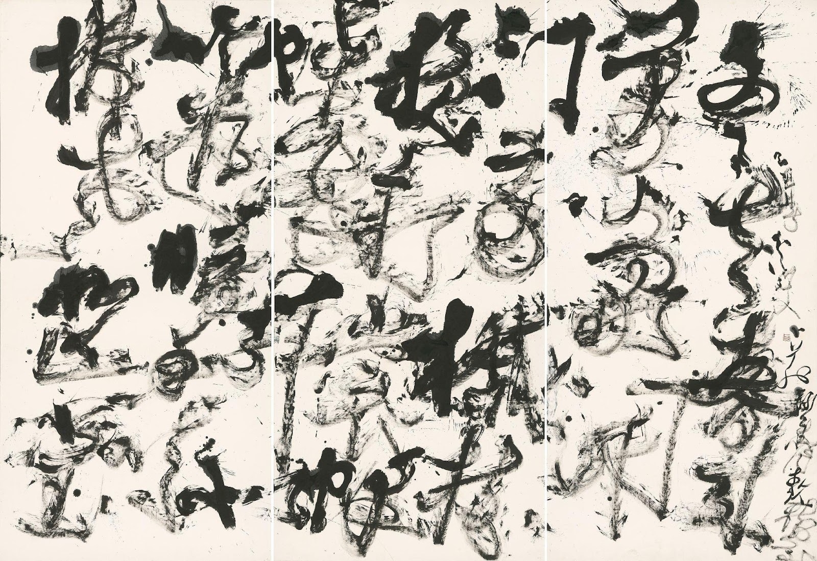 無限の自由を獲得することによって、書は自己組織し、自己運動する段階、つまり自立の近代に突入した。[…] 書が初めて芸術表現として独立することが可能になったのである。また、このとき、言葉を書きつけるところに自動的・付随的に書が誕生するという自明性は解体された。毛筆で詩文を書きつけることが必ずしも書の誕生を意味せず、逆に、筆触の表現力が詩文の表現力に匹敵する、あるいは上回るまでに至ったのである。(石川九楊編『書の宇宙』第21巻、二玄社、2000年、11頁)