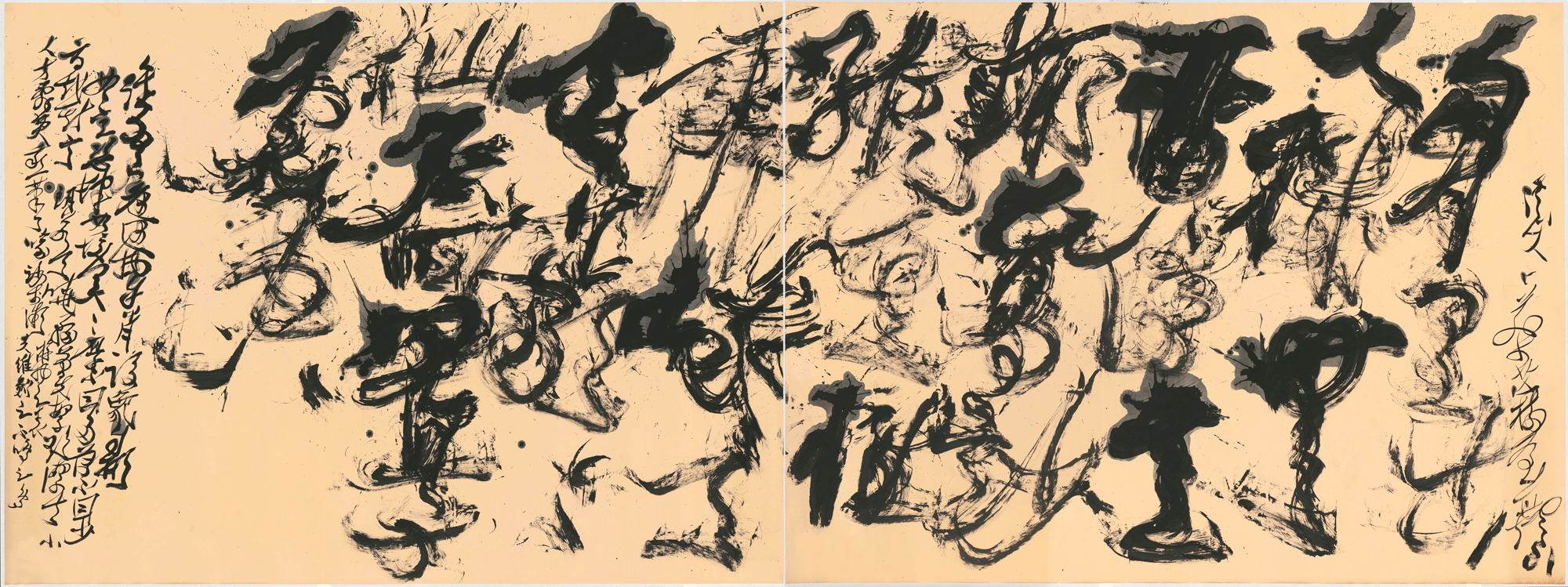 無限の自由を獲得することによって、書は自己組織し、自己運動する段階、つまり自立の近代に突入した。[…] 書が初めて芸術表現として独立することが可能になったのである。また、このとき、言葉を書きつけるところに自動的・付随的に書が誕生するという自明性は解体された。毛筆で詩文を書きつけることが必ずしも書の誕生を意味せず、逆に、筆触の表現力が詩文の表現力に匹敵する、あるいは上回るまでに至ったのである。(石川九楊編『書の宇宙』第21巻、二玄社、2000年、11頁)