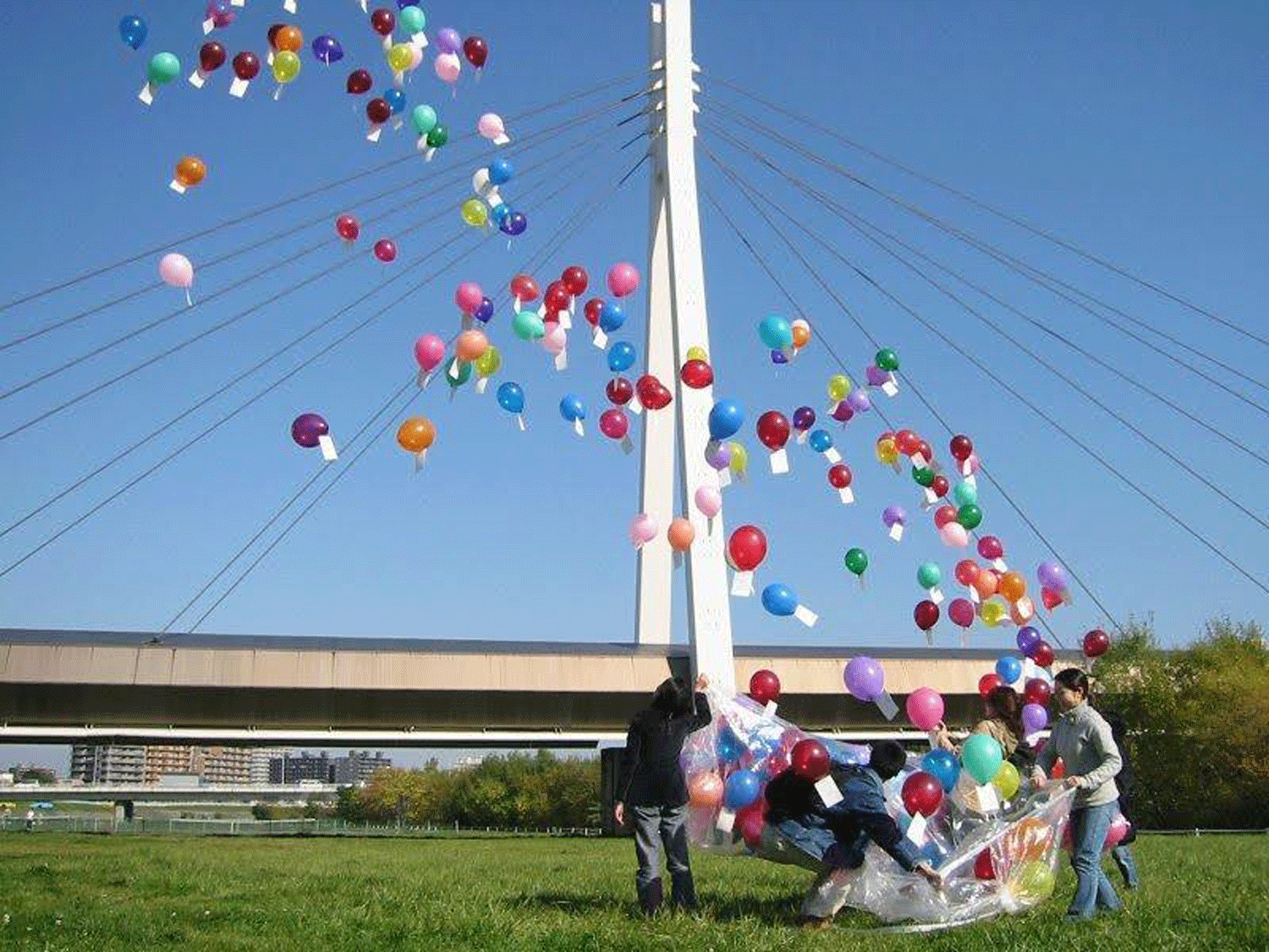 図1.アピチャッポン・ウィーラセタクン《Are you happy? バルーンプロジェクト》(2001)札幌滞在時