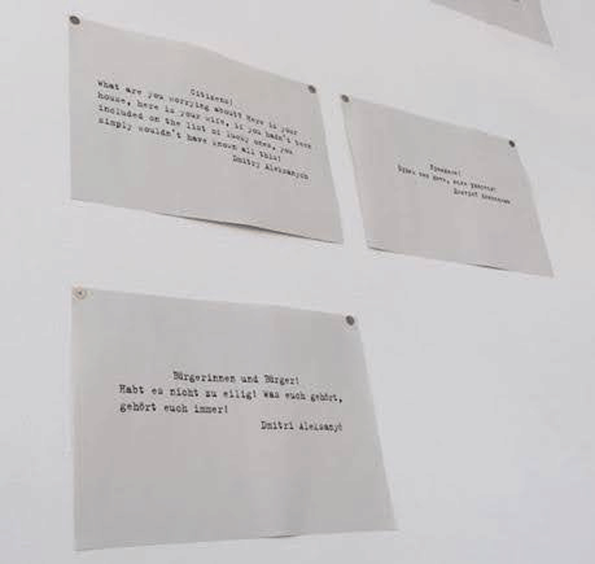 2017年、ドイツのカッセル市で開催されていた国際美術展「ドクメンタ14」のプレスセンター内でいくつかの時代のメモ群による作品が展示されていた。作者は、ドミトリー・プリゴフ。すでに2007年に亡くなっており、死後10年も経ってから、現代美術のオリンピックとも呼ばれる夢の舞台で選出されたことになる。