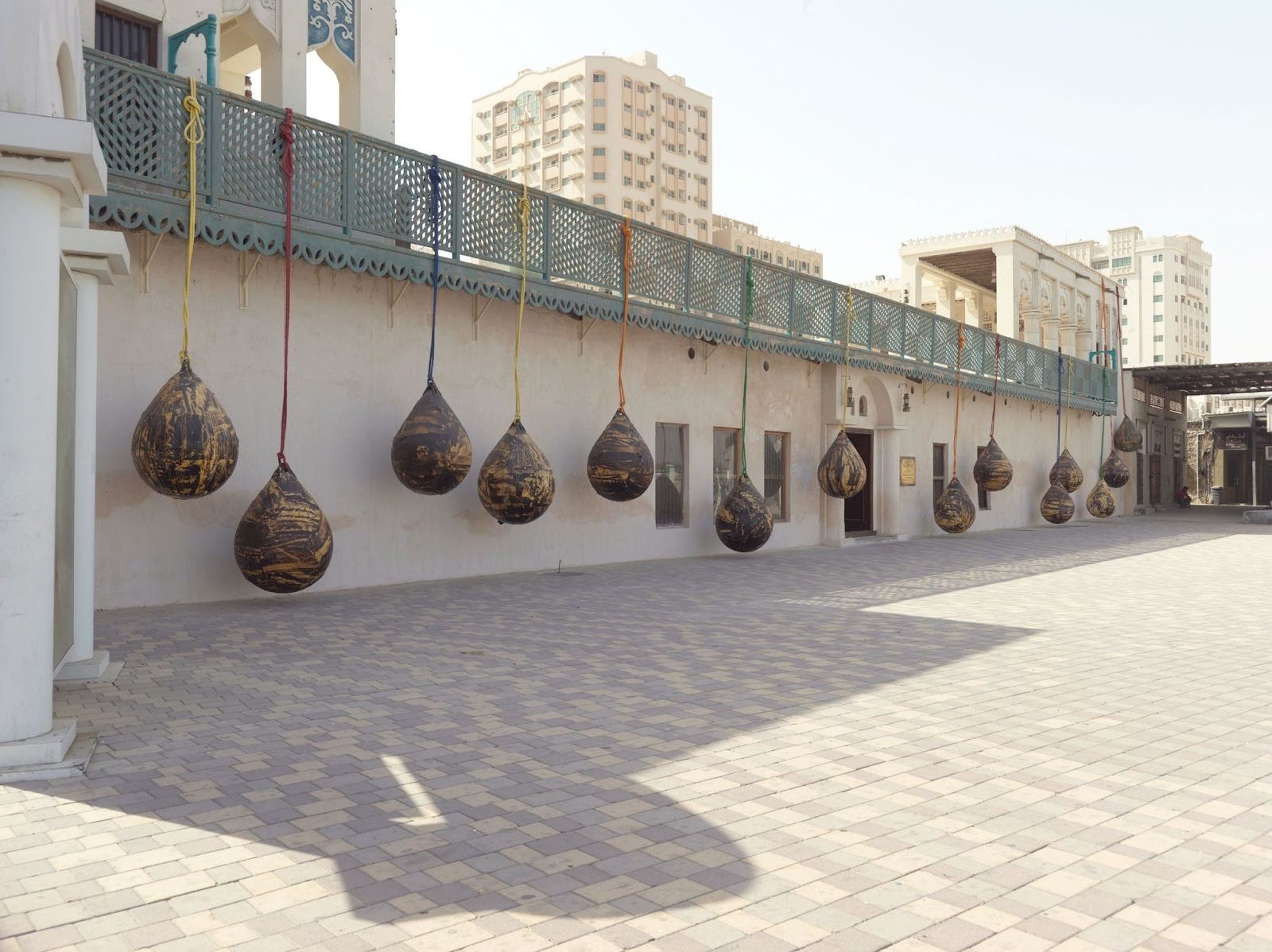 最終的にそれらは、シャルジャ・クリーク(シャルジャ市の中心部とアラビア湾を結ぶ、全長約3.5kmの水路)に面して、多くのダウ船や小型船が停泊している建物のバルコニーから吊り下げられました。