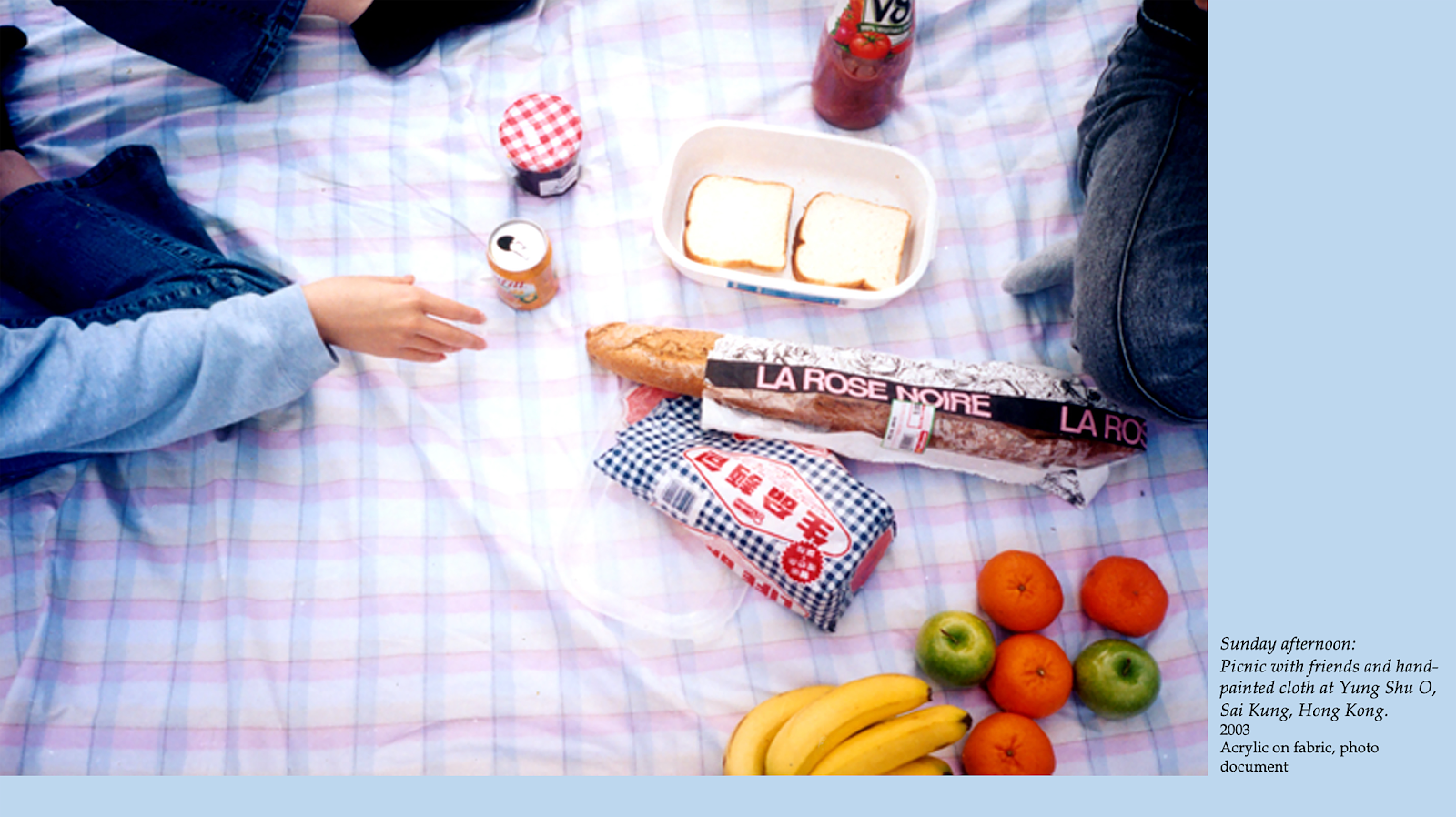 20~30個ほど、この手作りのクラフトを作って、色んなところで見せました。ただ、2003年のパンデミックが到来しました。ここに写っている手は、当時、私が好きだった人の手です。ピクニックに行こうと誘われて、特に何もやることがなかったので行きました。