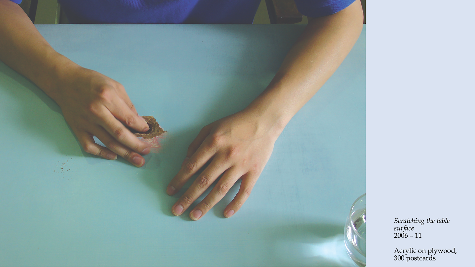 Scratching the table surface, 2006 – 11, Acrylic on plywood, 300 postcards