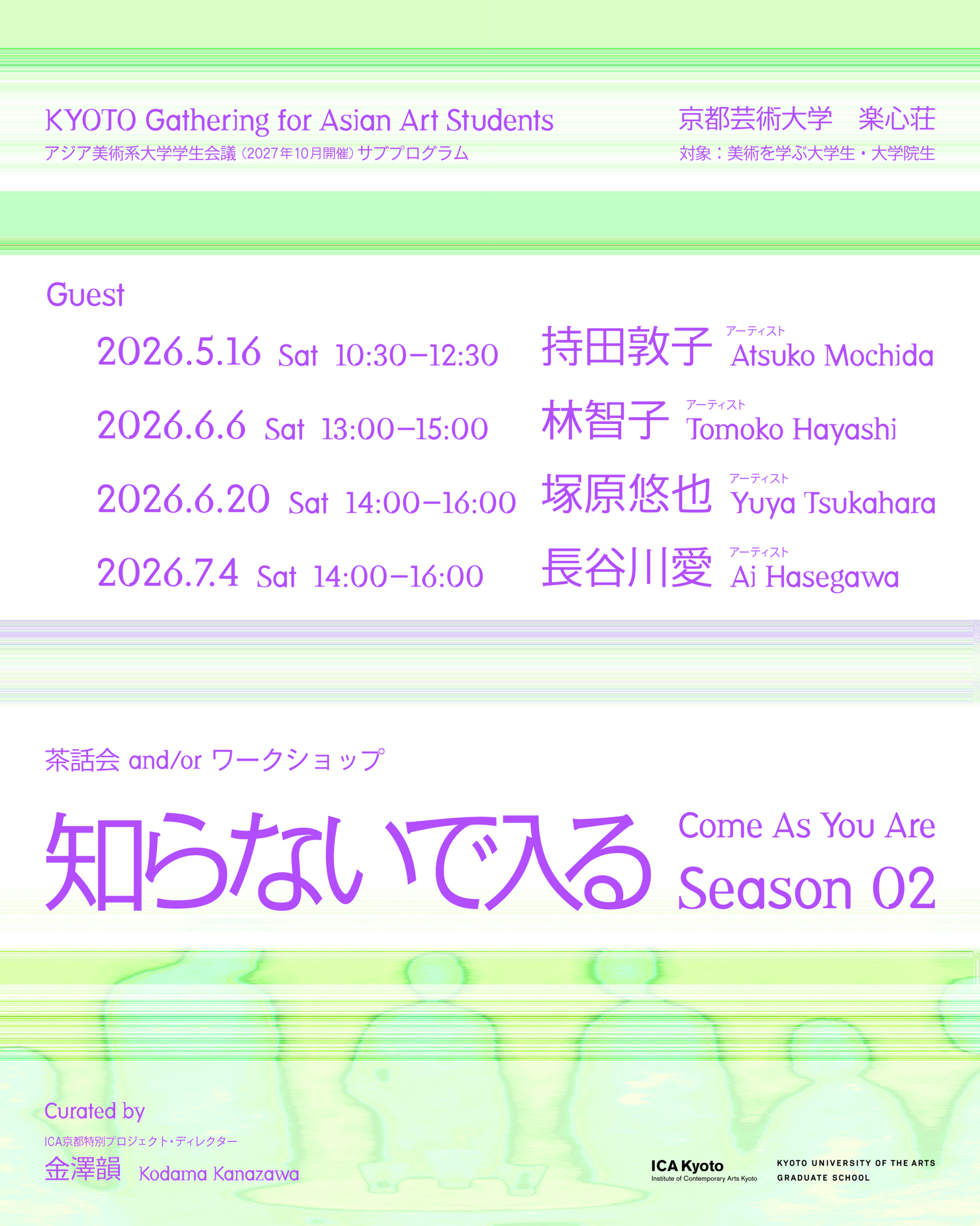 KYOTO Gathering for Asian Art Students アジア美術系大学学生会議 サブプログラム 茶話会 and/or ワークショップ「知らないで入る」シーズン2のラインナップをお知らせします