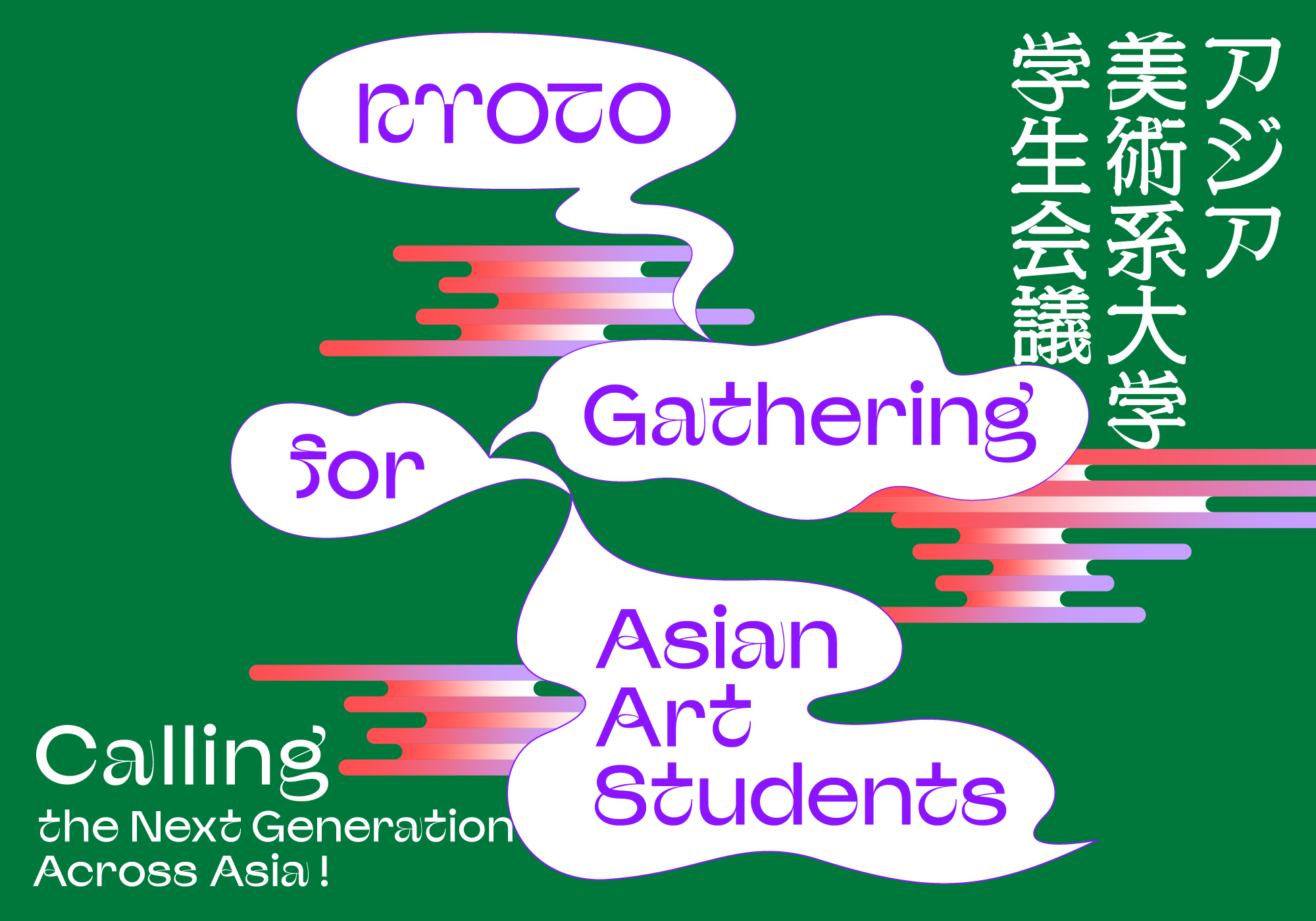 KYOTO Gathering for Asian Art Students(アジア美術系大学学生会議)は、東南アジア・東アジアの学生が集まり、アートの世界における相互理解と地域理解を深め、次世代のアーティスト、キュレーターを中心にしたネットワークを強化していくことを目的とした3日間の合宿型イベントです。欧米中心の美術潮流を見直し、グローバルなアート動向、それぞれの研究テーマ、キャリア形成について議論を行い、実践的な学びとつながりを得る機会を提供します。